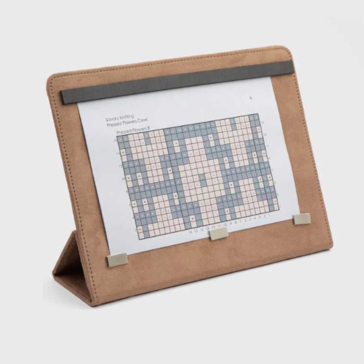 Chart keepers are handy for pattern readers. The Clay magnetic pattern holders are a “must have” when row-by-row attention is needed for complex patterns, such as lace or colorwork. The faux suede-like exterior is smooth to the touch and comes in your choice of sophisticated beige shade. They can be laid flat or stood up for easy reference. (10.25" X 12")