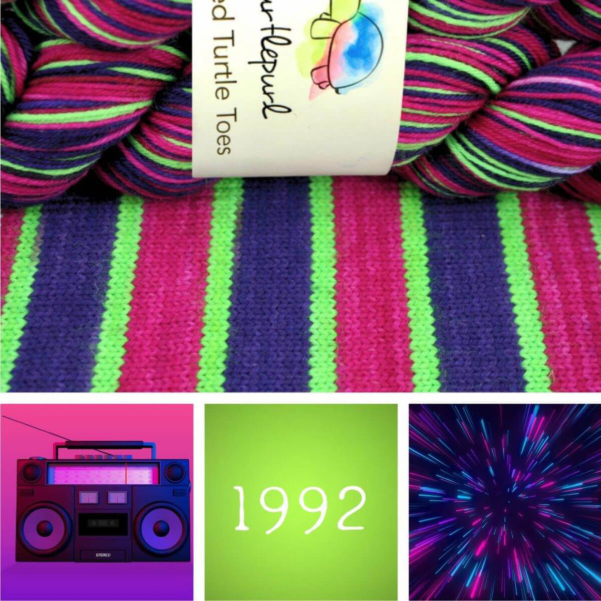 Already divided into 2 matching skeins, simply start from the same color on each skein to achieve matching socks. Watch the magic happen, one stripe at a time!