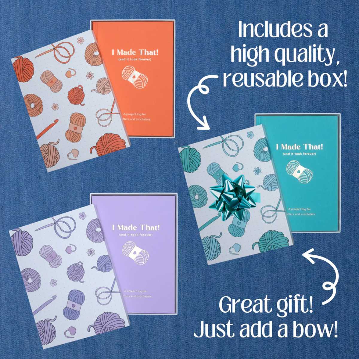Whether you are logging pattern details, storing yarn labels, or celebrating your handmade magic, I Made That! is a one-of-a-kind keepsake you (or your favorite maker) will treasure forever!